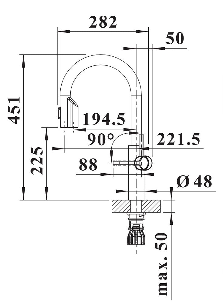 - 180° schwenkbarer Auslauf für Mischwasser und veredeltes Wasser