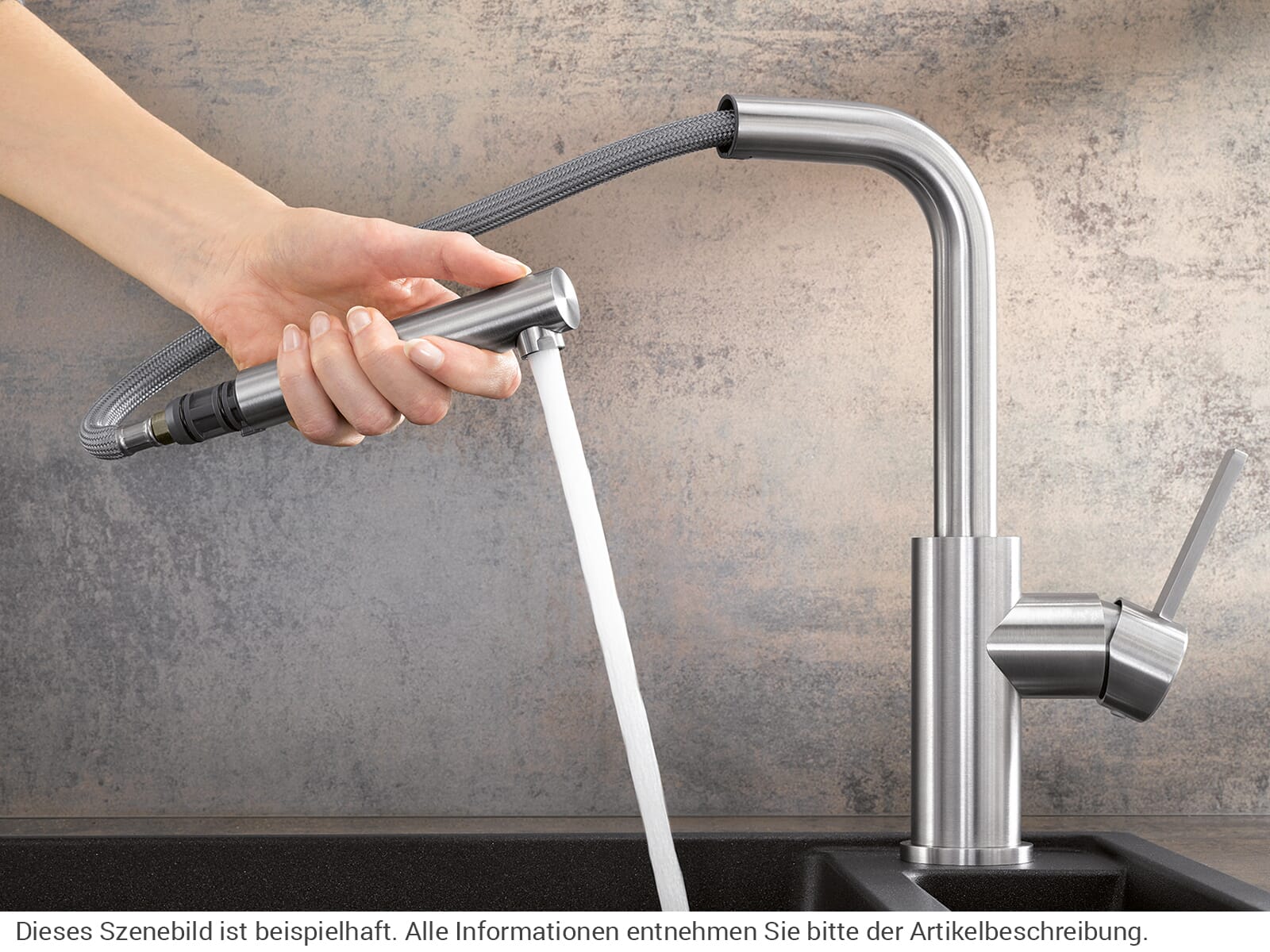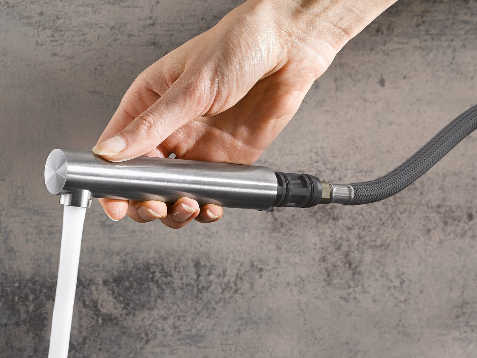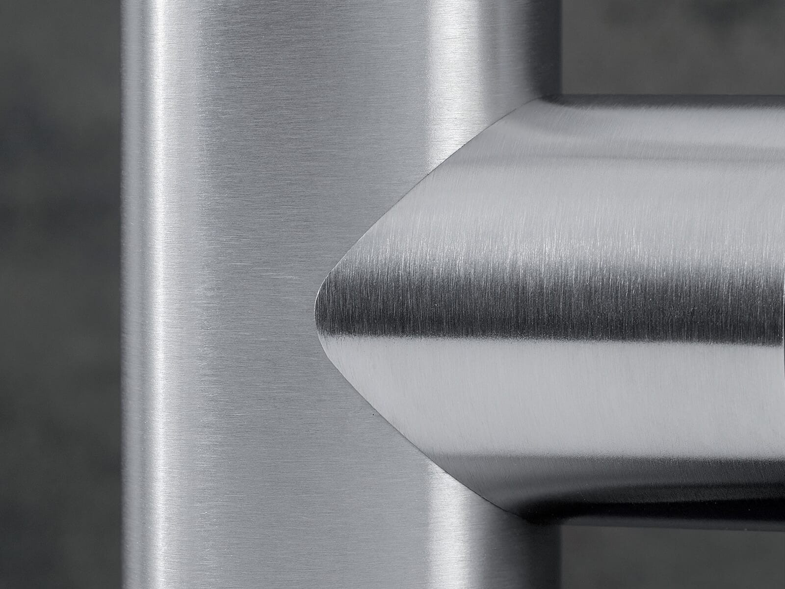 Edelstahl ist kratzfest, langlebig und rostet nicht. Die Armaturoberfläche ist glatt und hart und bietet keine Angriffsfläche für Keime und Verschmutzungen. Auch gegen Säuren oder Kratzer ist Edelstahl relativ unempfindlich. Und neben den praktischen Aspekten des Metalls ist Edelstahl der Inbegriff für Ästhetik und Eleganz. Bei der Armaturoberfläche können Sie zwischen glänzendem oder matt gebürstetem Edelstahl wählen, passend zu Ihren weiteren Oberflächen aus Edelstahl wie einer Backofenblende oder natürlich Ihrem Spülbecken.