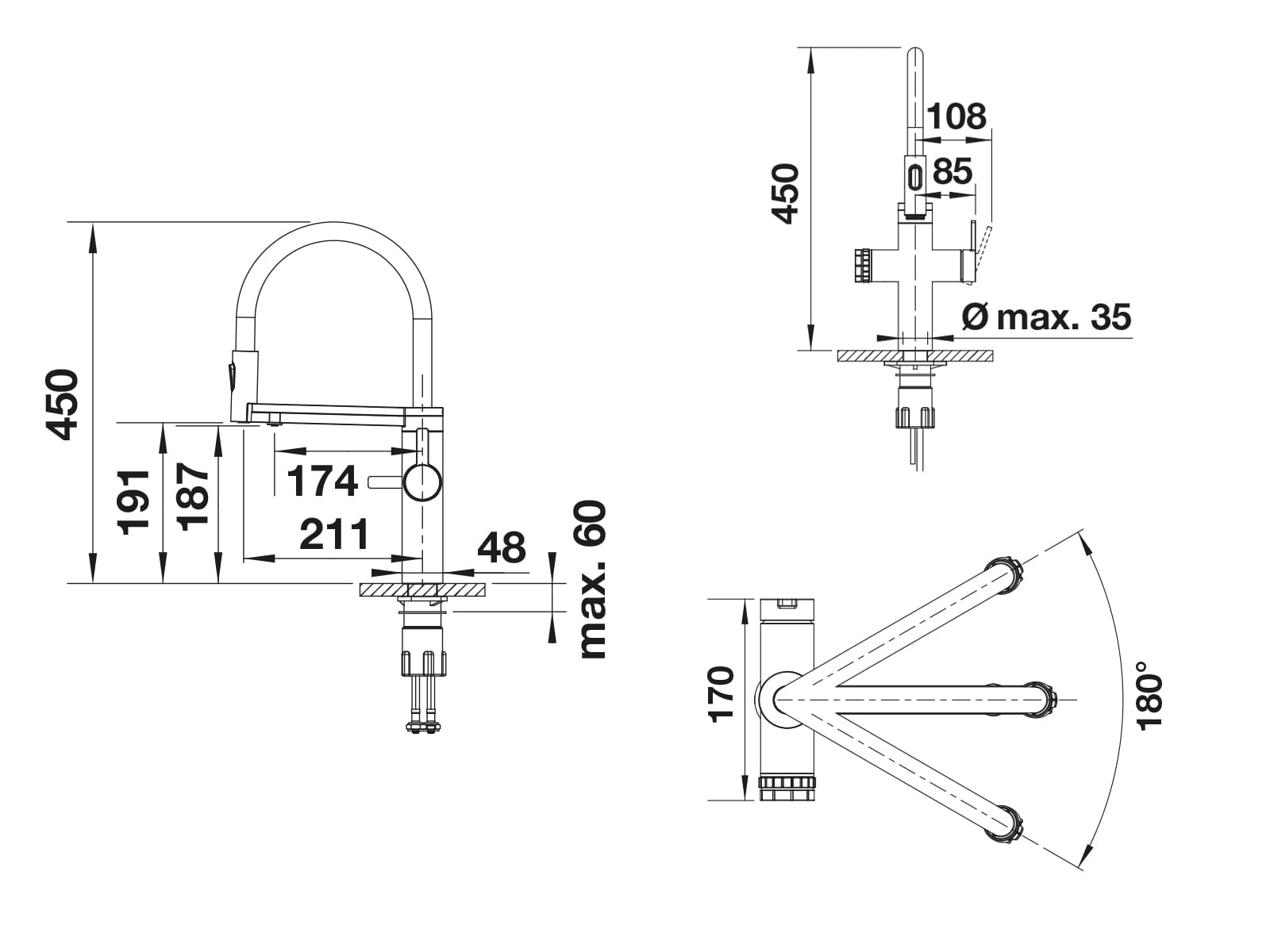 Die umstellbare Pendelbrause mit zwei Strahlarten und einem 180° Schwenkbereich bietet maximale Flexibilität beim Spülen, Reinigen und Befüllen von Töpfen oder Messbechern.
