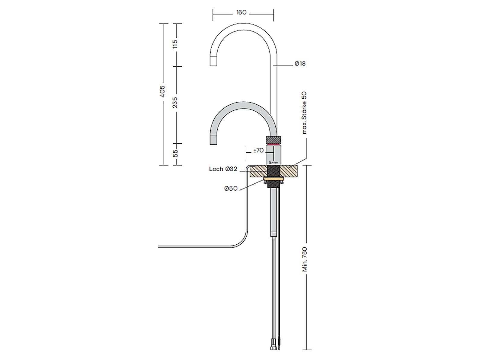 - Höhenverstellbarer Festauslauf